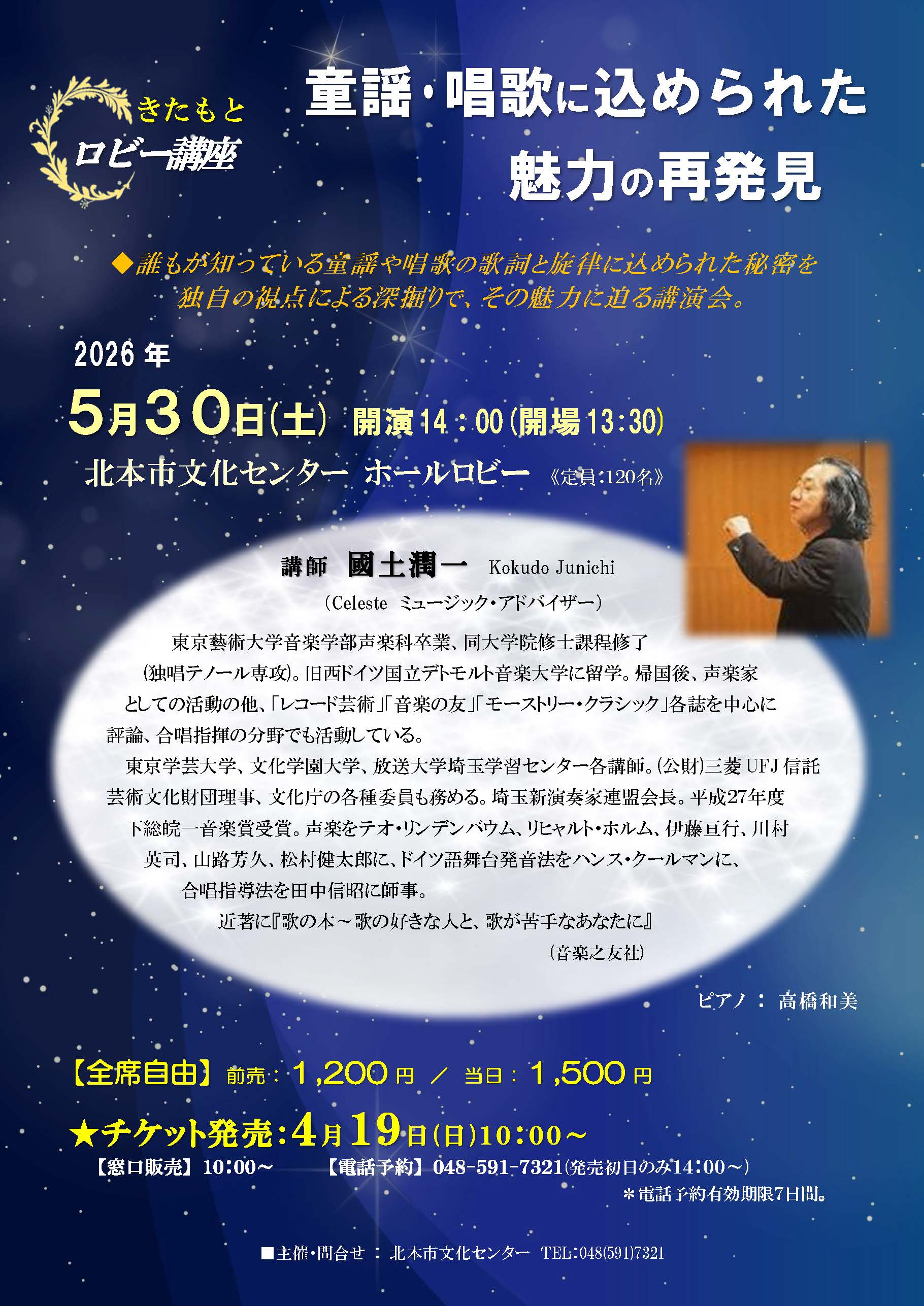 | 問い合わせ: | 北本市文化センター窓口(9:00~19:30) |
