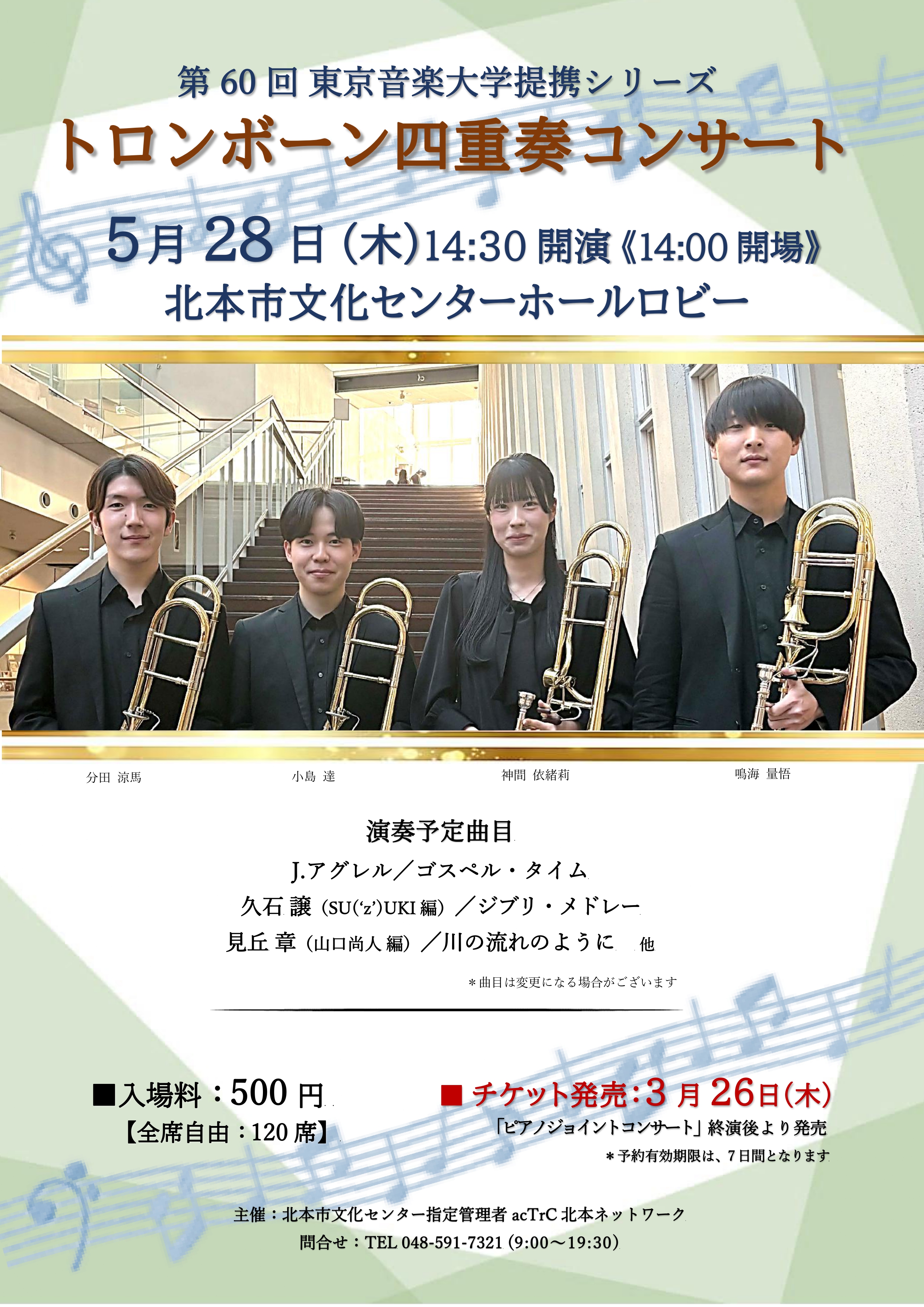 *各回1週間前までに北本市文化センター窓口にてお支払い下さい。