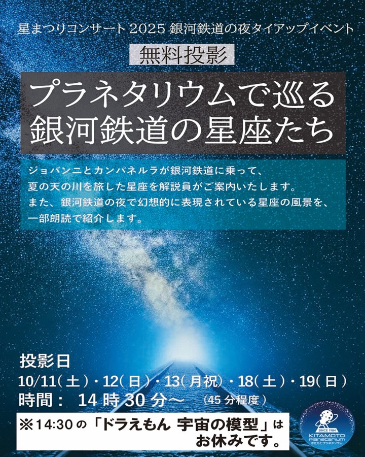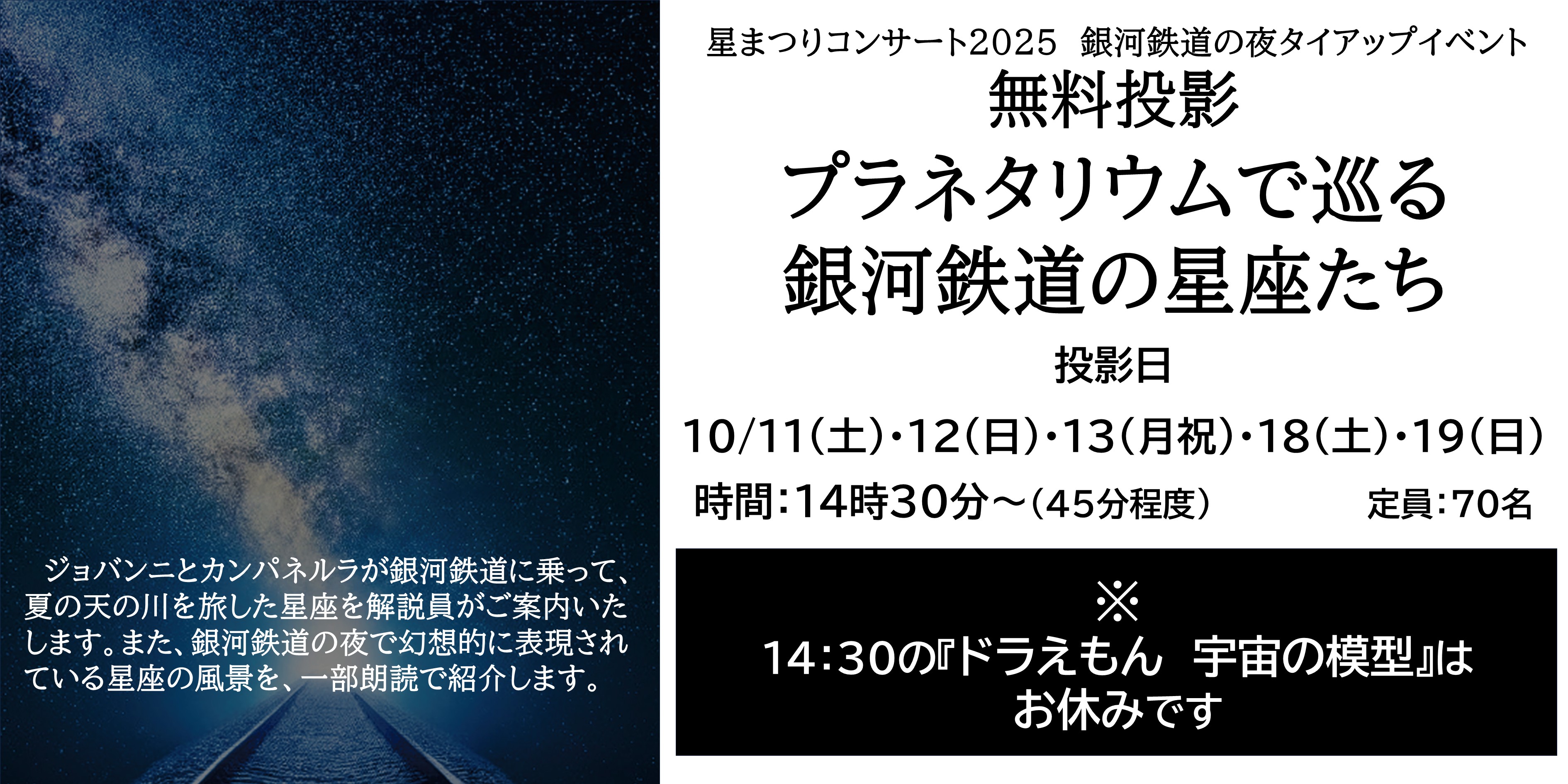 ※土日祝日と学校春夏冬休み期間は、投影はありません。